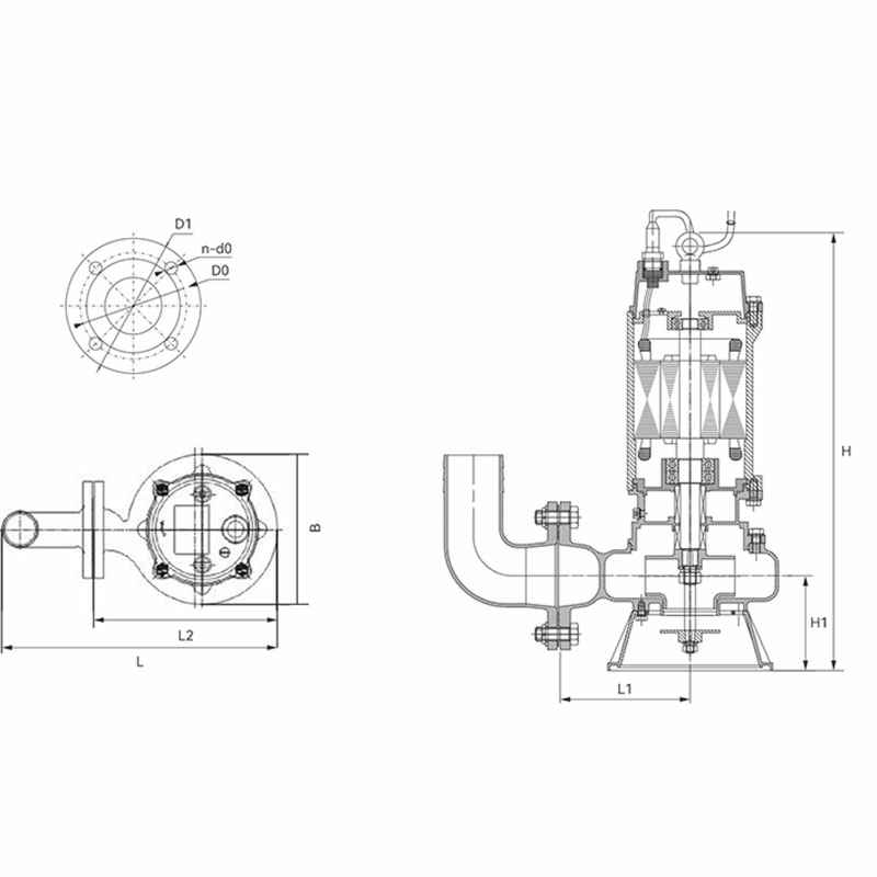 | 2 | 150WQ180-11-11S | 180 | 11 | 11 | 380 | 150 | 1450 | 795 | 325 | 566 | 485 | 1017 | 212 | Φ150 | Φ225 | 4-Φ17.5 | Φ265 |